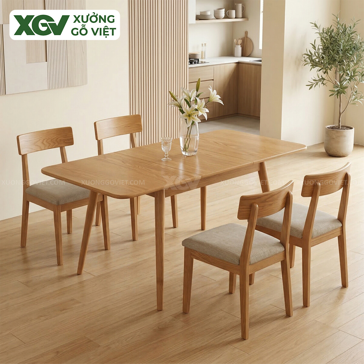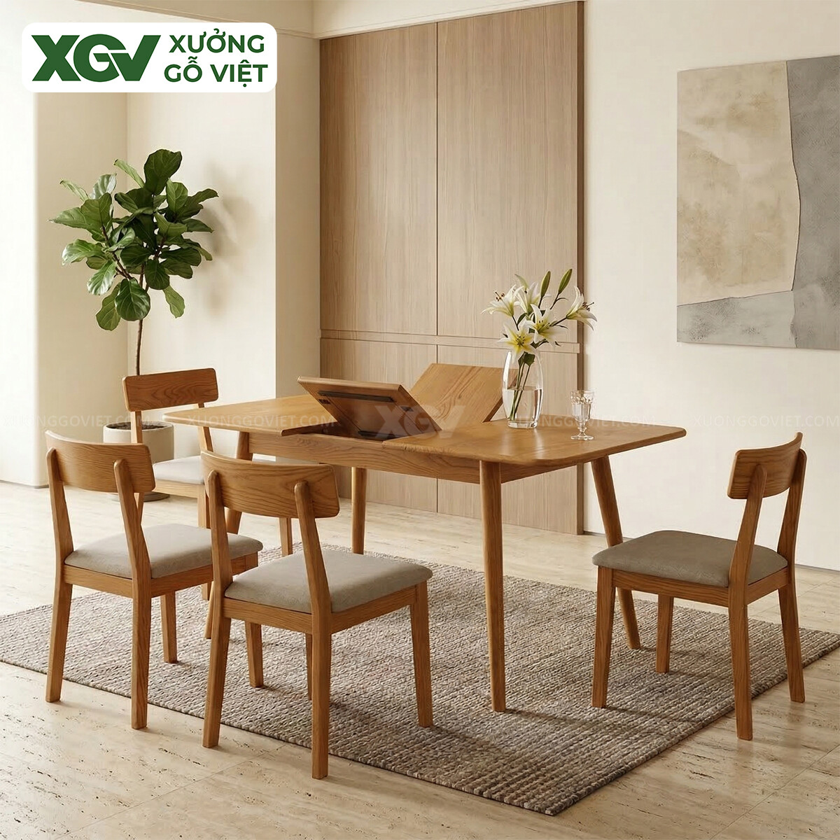 Bộ Bàn Ăn Thông Minh Gỗ Sồi Cơ Chế Mặt Bàn Mở Rộng Linh Hoạt