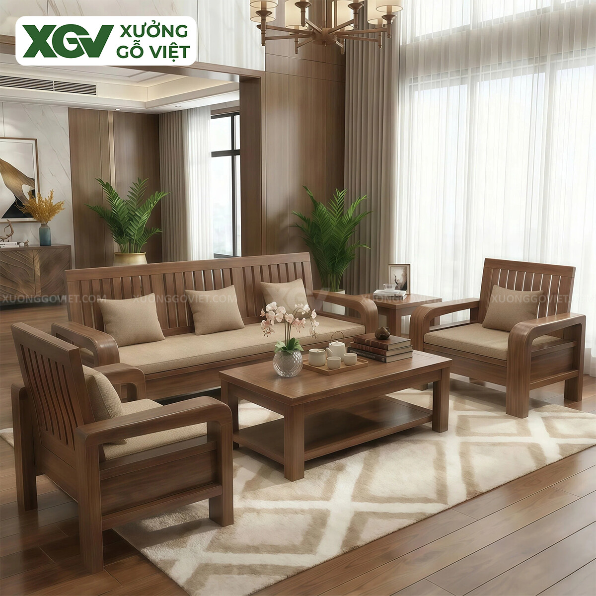| Kích thước: | Dài ~330cm x Rộng ~200cm (Tay 12, gỗ dày 5cm) |